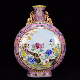 清乾隆年粉彩花鸟纹扁瓶37*27