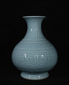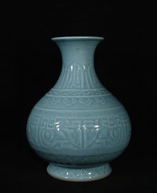 清乾隆年制单色釉雕刻花纹大肚瓶,高27×21厘米