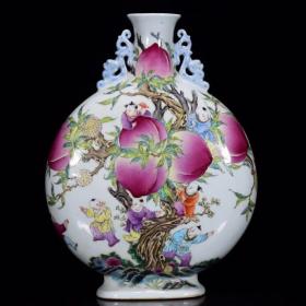 清乾隆年粉彩九子蟠桃纹扁瓶37*27