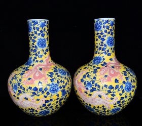 清乾隆年青花加彩龙凤纹天球瓶40*27厘米