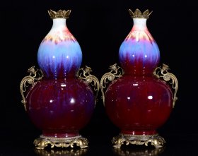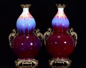 清乾隆年霁红窑刻包铜回流瓶50*27