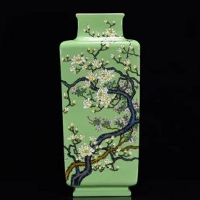 清乾隆年绿釉粉彩玉兰花纹四方瓶27*16m