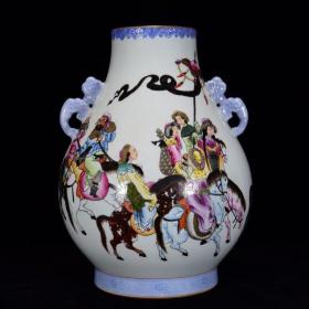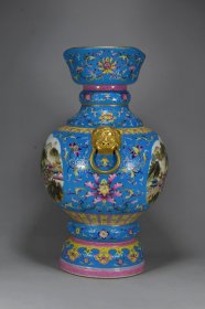清乾隆年粉彩人物纹如意尊37*27