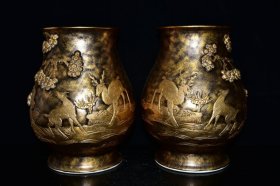 清乾隆年古铜釉雕刻鹿松纹尊27*19m