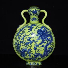 清乾隆年绿底青花龙凤纹扁瓶36*27
