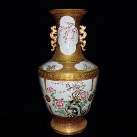 清乾隆年珐琅彩鎏金花鸟纹双耳瓶56*27