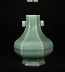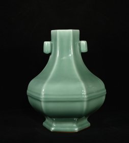 清乾隆年制豆青单色釉贯耳六方贯耳尊,高27×23厘米