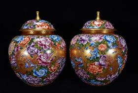 清乾隆年珐琅彩万花鎏金凤穿牡丹纹盖罐36*27m