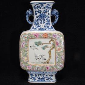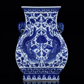 清乾隆年青花双凤纹象耳四方扁瓶27*19m2380¥