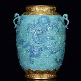 清乾隆年松石釉鎏金雕刻龙纹如意瓶 尺寸:37*27厘米 价格9000