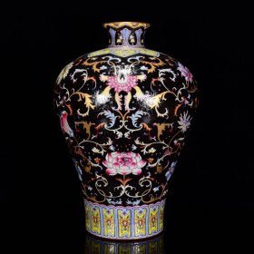 清乾隆年乌金釉粉彩蕃莲纹爬花梅瓶39*27m7800¥