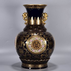 清乾隆年鎏金群仙般若菠萝蜜心经象耳瓶27×19