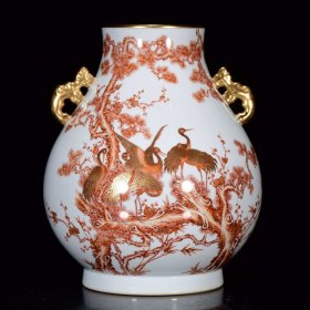 清乾隆年矾红描金松鹤纹如意尊33*27m8250¥