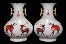 清乾隆年郎世宁作珐琅彩鹿纹描金双耳瓶27*20m3600¥