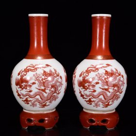 清乾隆年粉彩矾红龙凤纹转心瓶27*13m1050¥