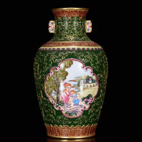 清乾隆年珐琅彩雕刻鎏金西洋人物纹贯耳瓶27*16m5250¥