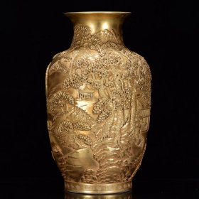 清乾隆年全金雕刻山水田园纹冬瓜瓶50*27m18000¥