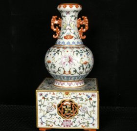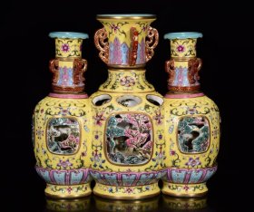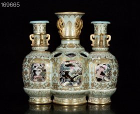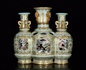 清乾隆年粉彩描金雕刻镂空暗凤尾三管转瓶27*28m10500¥