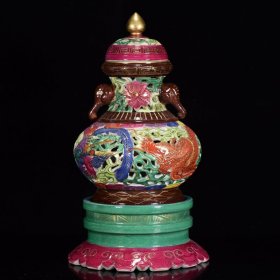 清乾隆年珐琅彩刻金龙凤纹壶 尺寸:27*20厘米 价格2550