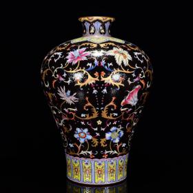 清乾隆年乌金釉粉彩蕃莲纹爬花梅瓶39*27m