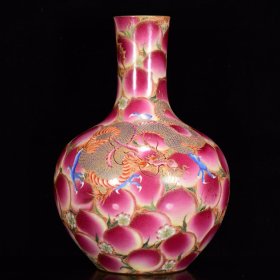 清乾隆年珐琅彩雕刻龙纹花鸟纹鎏金天球瓶40*27m8700¥