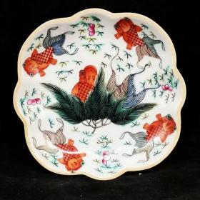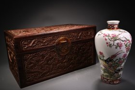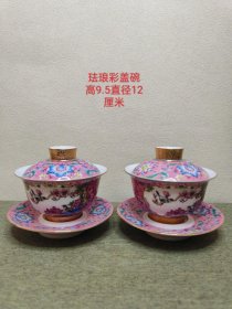 珐琅彩盖碗 高9.5厘米,直径12厘米 盖碗以粉色为主色调,两侧开窗手绘花卉、小鸟等图案,盖顶和碗身底部有金色装饰,工艺精细,图案精美,体现了珐琅彩瓷器的华丽与精致,具有较高的艺术观赏价值。