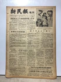 新民报 晚刊 1956年6月20日 6版全 (苏联海军友好访华舰队下午驶进黄浦江 本市各界代表在外滩隆重举行欢迎仪式、珍贵文物不断从废品中抢救出来、手工艺品东阳木雕、演出节目单戏单节目预告)