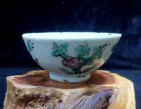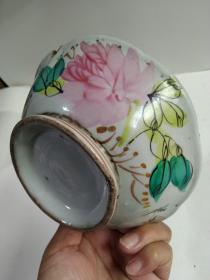 晚清柴烧粉彩小茶杯。口径6.3厘米,高3厘米。口沿有一处不起眼的小磕,介意勿拍。 有一定年份的茶碗,经过时光的流逝,难免会有些许瑕疵,这也是正常的岁月的痕迹。追求完美主义者慎拍