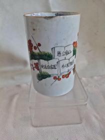 民国粉彩人物渣斗 高度8.7 口径7.4 器型规整 瓷质细腻莹润 发色淡雅 画工一流 口沿一点小磕补见图4图5 底有惊釉应该是不透图6图7