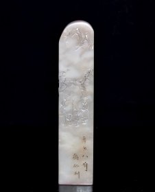 1160️ 尺寸:3.5*3.5*11厘米 重量:190克 早期收藏 寿山石芙蓉石圆形老印章 原石原色纯手工雕刻 雕工精细 造型独特 包浆老气 磨损自然 篆刻家【曼生】壬午年刻 收藏佳品