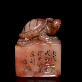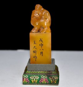 早期收藏 寿山石老印章 原石原色纯手工雕刻 雕工精细 造型独特 形象逼真 保存完整 篆刻家【桂山】戊戌六月作600️ 尺寸:5*2.5*8厘米 重量:137克