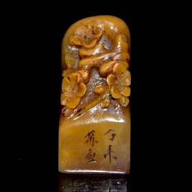 早期收藏 寿山石田黄石随形印章 原石原色雕刻 包浆老气 磨损自然 包浆老气 篆刻家【三庚】作 文房收藏佳品700️ 尺寸:4*3.5*5厘米 重量:69克