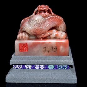 旧藏老货 老寿山石《四大神兽》随形印章 原石原色纯手工雕刻 工艺精湛 包浆老气 保存完整 篆刻家【尚均】作 2600️ 尺寸:9*5*8厘米(含底座高)净高5厘米 重量:381克