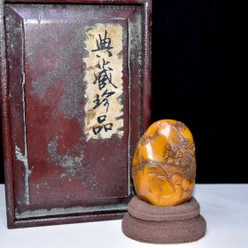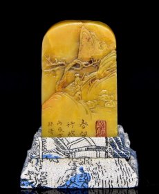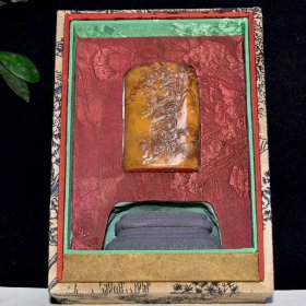 旧藏珍品 寿山石田黄石山水人物随形印章 原石原色纯手工雕刻 薄意工艺 石质通透坚硬 雕工精细 包浆老气 篆刻家【文鼎】庚申年刻石 收藏佳品2400️ 尺寸:8*3*8厘米 重量:264克