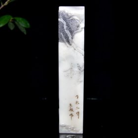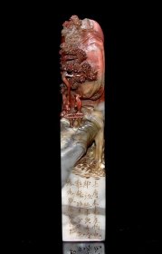 旧藏老货 寿山石荔枝冻山水人物印章 原石原色纯手工雕刻 质地通透细腻 纹路清晰 篆刻家【蒋仁】辛丑年作 1600️ 尺寸:3*3.3*15.5厘米 重量:402克