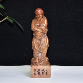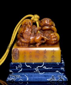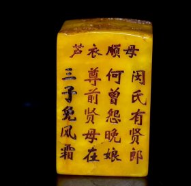 旧藏老货 寿山石田黄石二十四孝之《芦衣顺母》印章 石质通透油润 手感光滑细腻 蜡质感强 篆刻家【大炘】壬子年刊石300️ 尺寸:5*5*8厘米 重量:527克