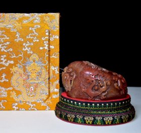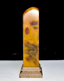 A早期收藏 寿山石田黄石印章 原石原色纯手工雕刻 雕工精细 血丝纹清晰可见 篆刻家【清卿】作 收藏摆饰佳品1400️ 尺寸:4.5*2*10厘米(含底座高)净高7厘米 重量:147克