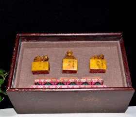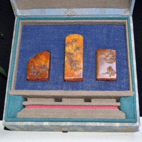 珍藏精品 寿山石田黄石印章套章 原石原色纯手工薄意雕刻 雕工精细 满萝卜丝纹 篆刻家【周芬】甲寅年作 5000️ 尺寸:3.5*1.7*5 3*3*8 3*2*5厘米 重量:322克