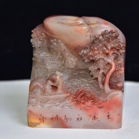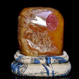 旧藏老货 寿山石荔枝冻山水人物印章 原石原色纯手工雕刻 质地通透细腻 纹路清晰 篆刻家【王㤥】丁丑年作 1600️ 尺寸:3*3*7厘米(硬) 重量:432克