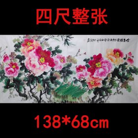 【重磅推荐】·【八千多条好评】广西名家韦仲传先生精品《金玉满堂竹报平安》纯手绘保真销售,未装裱宣纸画芯四尺整张牡丹国画,构图大气,实为不可多得之佳品。一图一拍所见即所得。