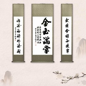 【8—739】名家书法纯手工书写 临摹仿制中国著名书画艺术大师杨之光的字体书写诗句《金玉满堂》长89cmx宽25cm 画边撕裂破损 品相如图(未裱)