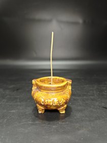 金玉满堂文房三足香插 香炉 烛台 843寓意美好,小巧精致,器形独特,古朴,宜会所,书房,案桌,厅堂,茶室,古民居展示使用。图九底足有磕皮。