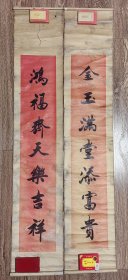 老中堂挂轴对联一套(26.5厘米X1307厘米)俞声词,陈骧龙书。包老保真。 天官赐福 “金玉满堂添富贵”1挂轴 “鸿福齐天乐吉祥”1挂轴 如图实物发货。58包