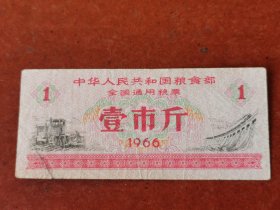 1966年全国通用粮票一张,壹市斤。