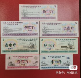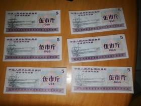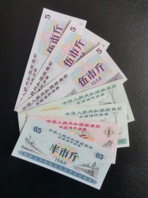 1966年全国通用粮票伍市斤 6张