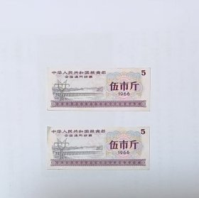 1966年全国通用粮票,伍市斤,两张