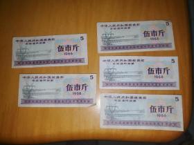 1966年全国通用粮票伍市斤 5张