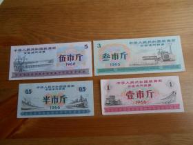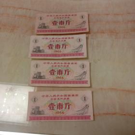1966年全国通用粮票壹市斤,四张