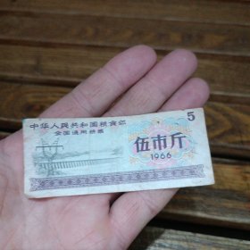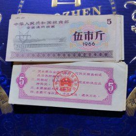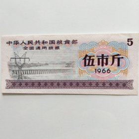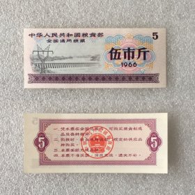 中华人民共和国粮食全国通用粮票。伍市斤1966年