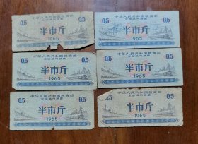 中华人民共和国粮食全国通用粮票。6张 半市斤1966年
